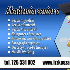 Akademia Seniora, działająca przy Instytucie Rozwoju Zrównoważonego w Koszalinie, zaprasza Panie i Panów, w wieku 50+, na kursy komputerowe ( plus Internet, smartfon, tablet, fotografia cyfrowa). Naszym standardem stały się zajęcia w niewielkich grupach, w ciepłej, niemal rodzinnej atmosferze. Naszym miłym kursantom zawsze oferujemy ponadto słodki poczęstunek i liczne niespodzianki. Po więcej informacji zapraszamy do naszej siedziby przy ul. Wyspiańskiego 12/1a w Koszalinie lub telefonicznie: 726 531 002