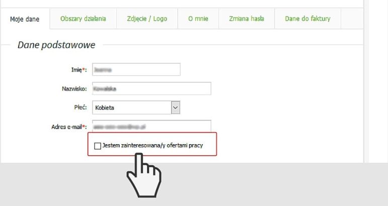 Można zmienić te ustawienia logując się na konto i w edycji danych zaznaczając opcję „Jestem zainteresowana/y ofertami pracy”. Wówczas w profilu będzie widniała zgoda na ich przesyłanie.
