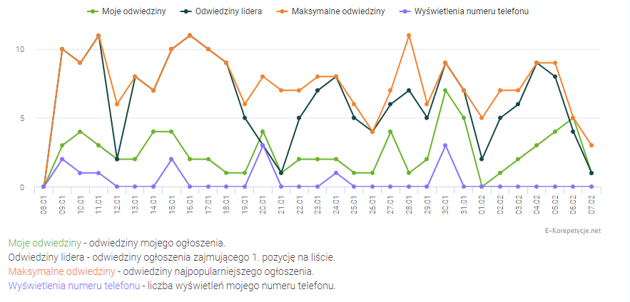 - Możesz porównać odwiedziny Twoich ogłoszeń korepetycji z liderem danego przedmiotu.