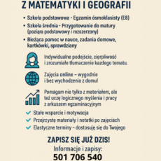 Oferuję pomoc doraźną oraz stałą współpracę, przygotowanie do egzaminu E8 i do matury. Posiadam duże doświadczenie.