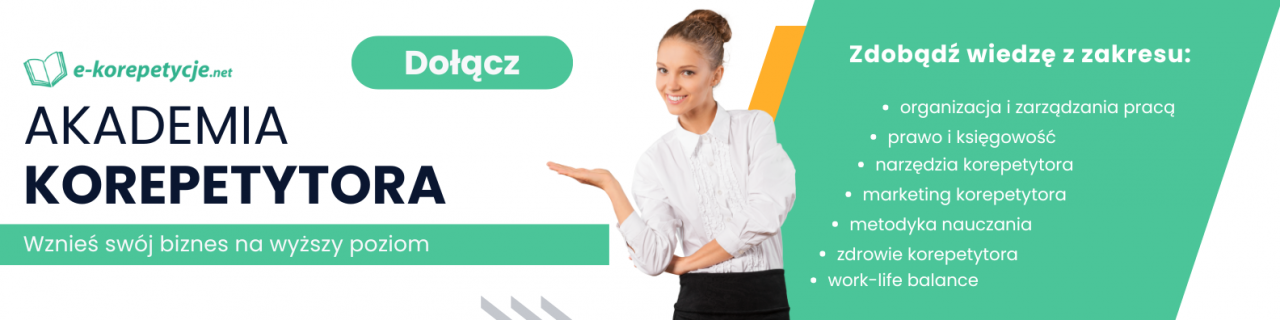 Wierzymy, że Akademia Korepetytora to nie tylko kolejna platforma szkoleniowa. Tworząc nasze materiały, współpracujemy z ekspertami z różnych dziedzin. Znajdziesz tu wiedzę dostarczoną bezpośrednio od radców prawnych, specjalistów od marketingu, doświadczonych fizjoterapeutów czy doradców podatkowych. Naszym celem jest zapewnienie kompleksowego wsparcia Tobie – korepetytorowi, który pragnie rozwijać się zarówno jako wykwalifikowany nauczyciel, jak i doświadczony przedsiębiorca.