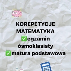 Witam oferuję korepetycje dla dzieci i młodzieży szkoły podstawowej z matematyki. Mam doświadczenie w nauczaniu dzieci i młodzieży. Jestem studentką kierunku lekarskiego, maturę z matematyki napisałam na 5 i chętnie wykorzystam swoje umiejętności, aby podzielić się wiedzą w przyjaznej atmosferze. Jestem osobą wymagającą i od uczniów oczekuje zaangażowania. Szczególnie zapraszam osoby zainteresowane przygotowaniami do egzaminu ósmoklasisty i matury podstawowej. Zajęcia odbywać się będą w formie kursu- materiał opracowujemy zgodnie z wymaganiami CKE, zaczynamy od początku, następnie przechodząc przez wszystkie zagadnienia, systematyzujemy wiedzę. Jeśli jeszcze nie rozpoczęłaś/ rozpocząłeś przygotowywań do egzaminu, nic straconego, dzięki mojej wiedzy, a Twojej pracy- jesteś w stanie uzyskać wymarzony wynik. Stawka to 70 zł za 60 minut zajęć. Możliwość spotkań stacjonarnych (dojazd do mnie, LIGOTA) lub zdalnie.Serdecznie zapraszam.